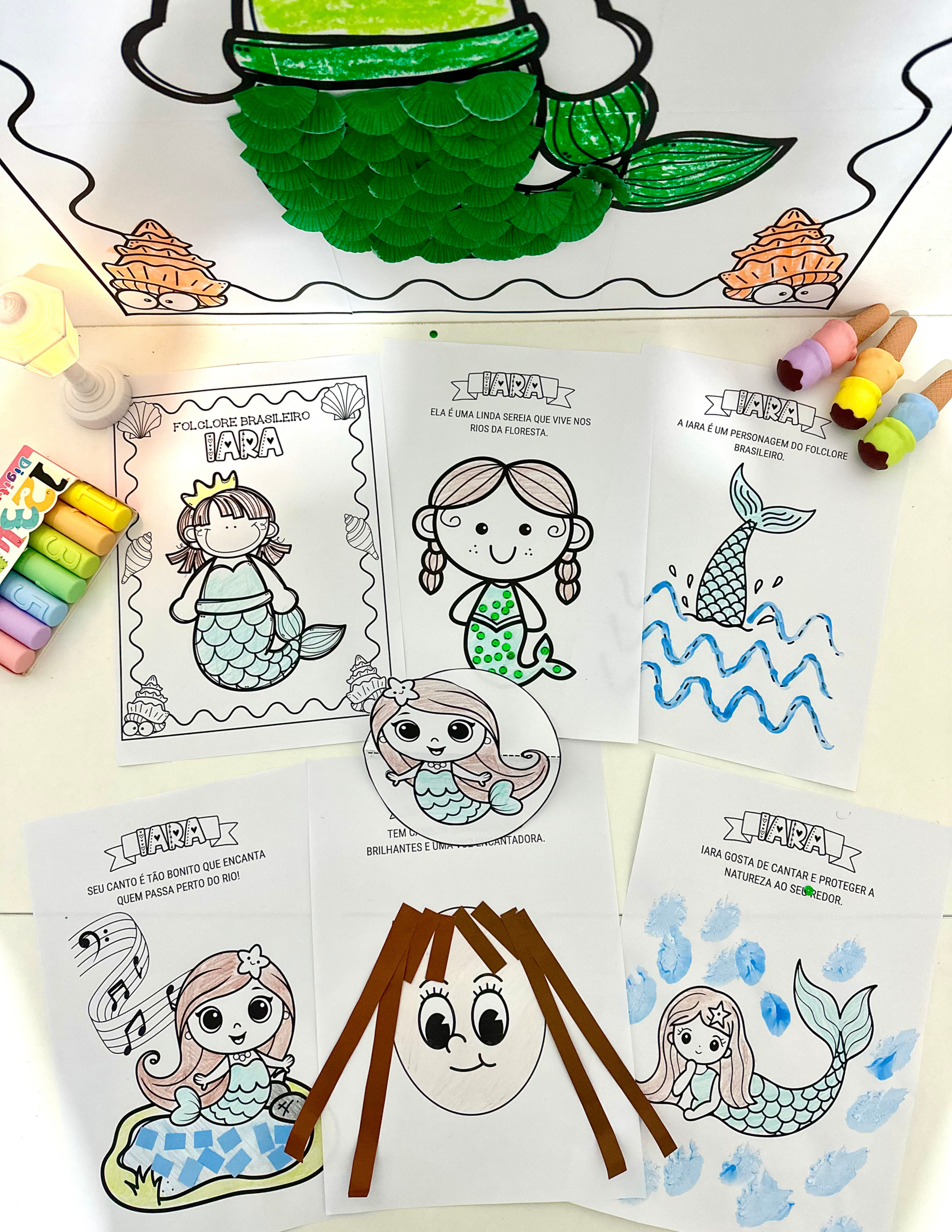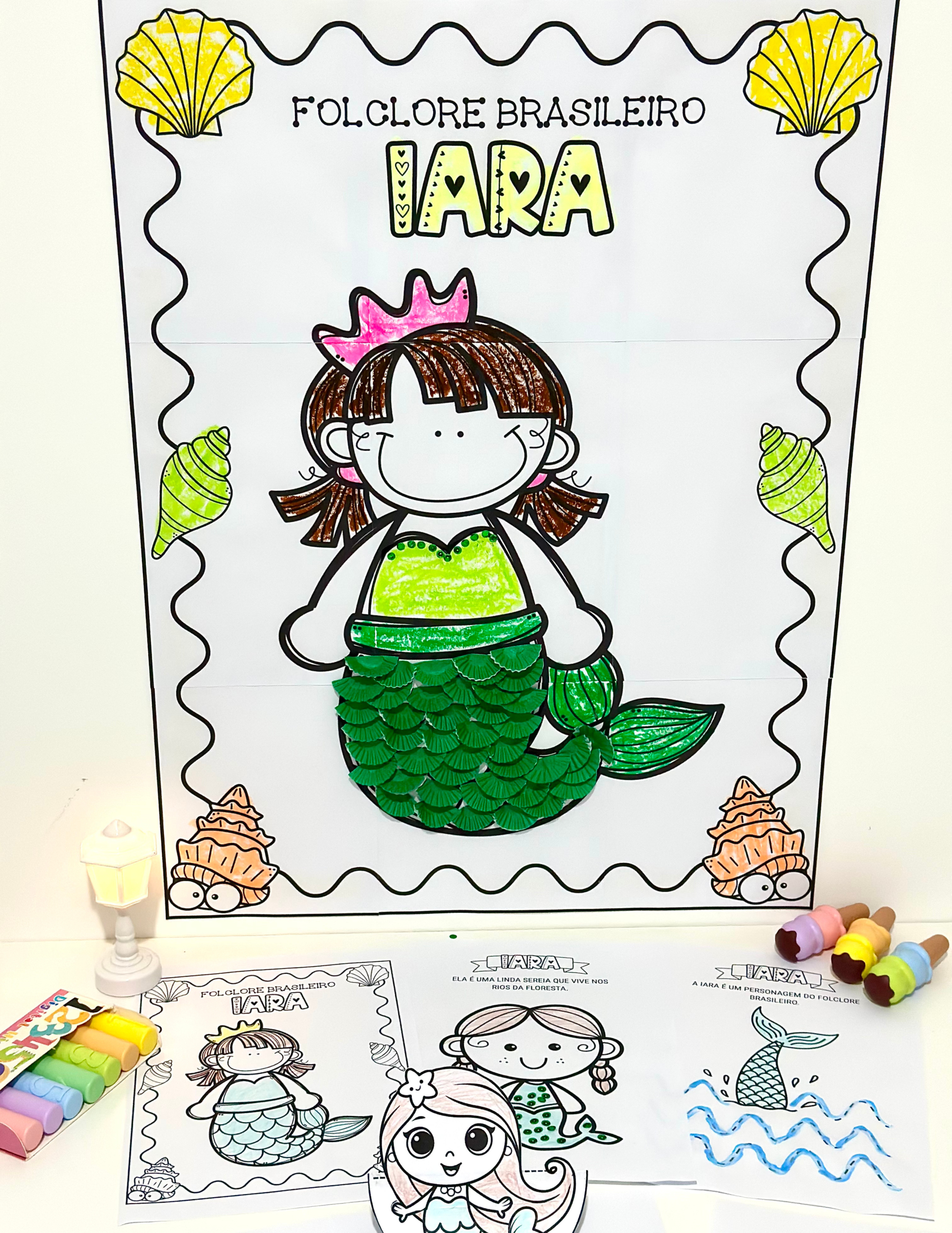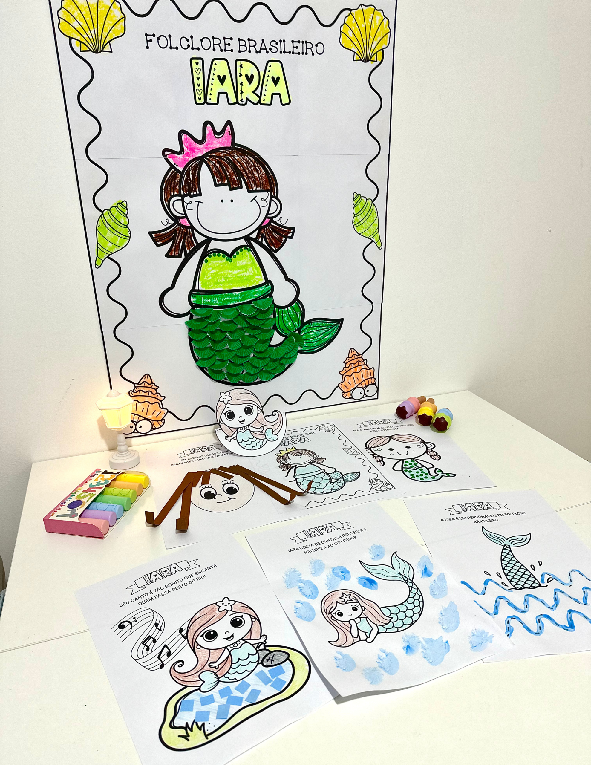 Kit de Cartaz colaborativo e atividades de Artes tema Iara- Folclore.