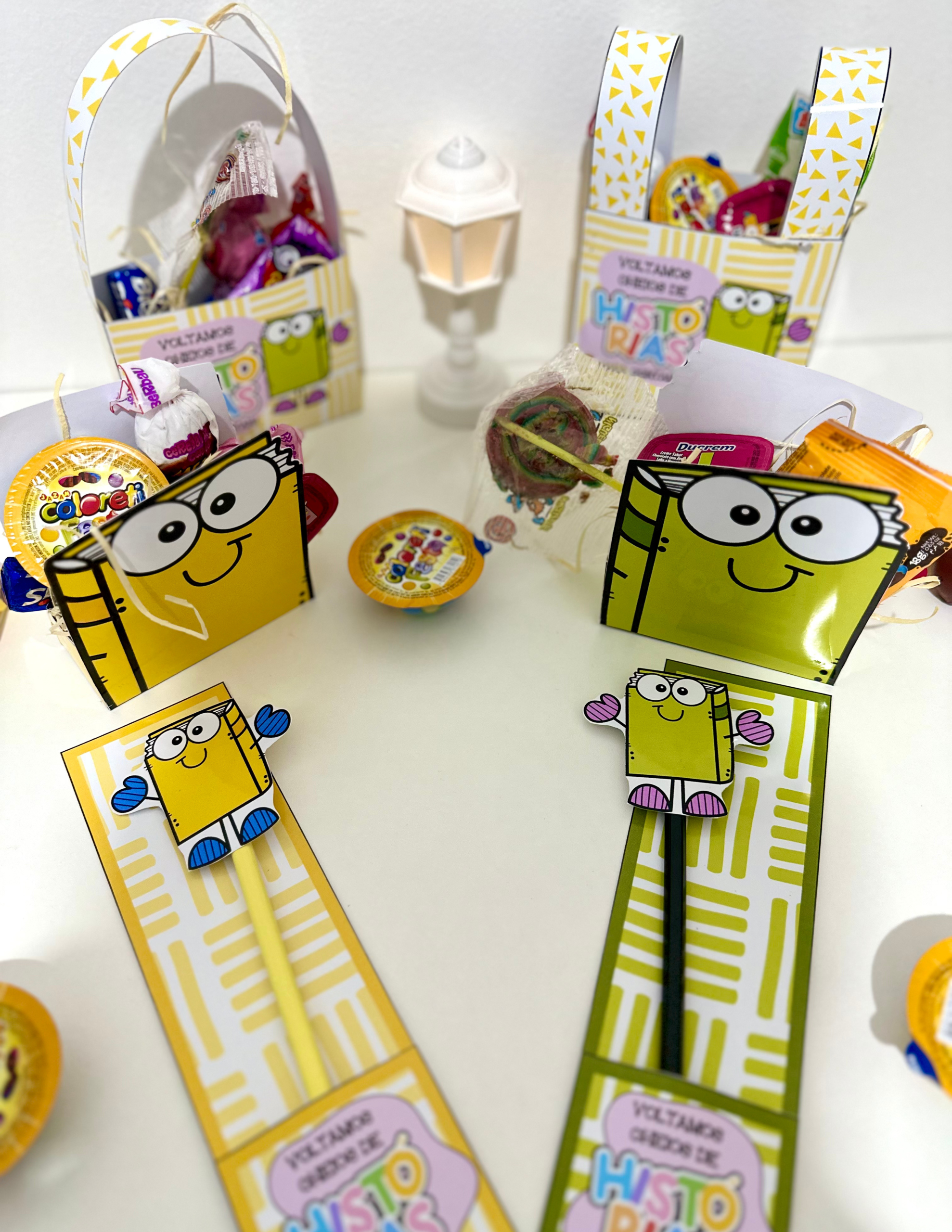 Kit Lembrancinhas Volta às Aulas ideal para turmas da Educação Infantil e séries iniciais do Ensino Fundamental.